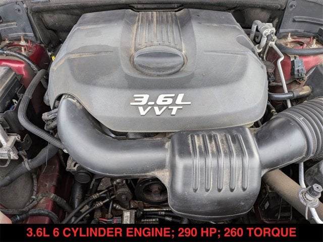 Grand Cherokee Laredo, 4D Sport Utility, 3.6L V6 Flex Fuel 24V VVT, 5-Speed Automatic, 4WD, Deep Cherry Red Crystal Pearlcoat, Black Cloth, 17" x 8.0" Aluminum Wheels, 6 Speakers, Anti-whiplash front head restraints, Audio Jack Input for Mobile Devices, Brake assist, Bright Side Roof Rails, Electronic Stability Control, Front fog lights, Fully automatic headlights, Heated door mirrors, Illuminated entry, Keyless Enter-N-Go, Laredo E Group, Low tire pressure warning, Normal Duty Suspension, Outside temperature display, Power 4-Way Driver Lumbar Adjust, Power 8-Way Driver/Manual Passenger Seat, Quick Order Package 26E, Radio: Media Center 130 CD/MP3, Rear reading lights, Rear window wiper, SIRIUS Satellite Radio, Speed-Sensitive Wipers, Spoiler, Steering wheel mounted audio controls, Telescoping steering wheel.