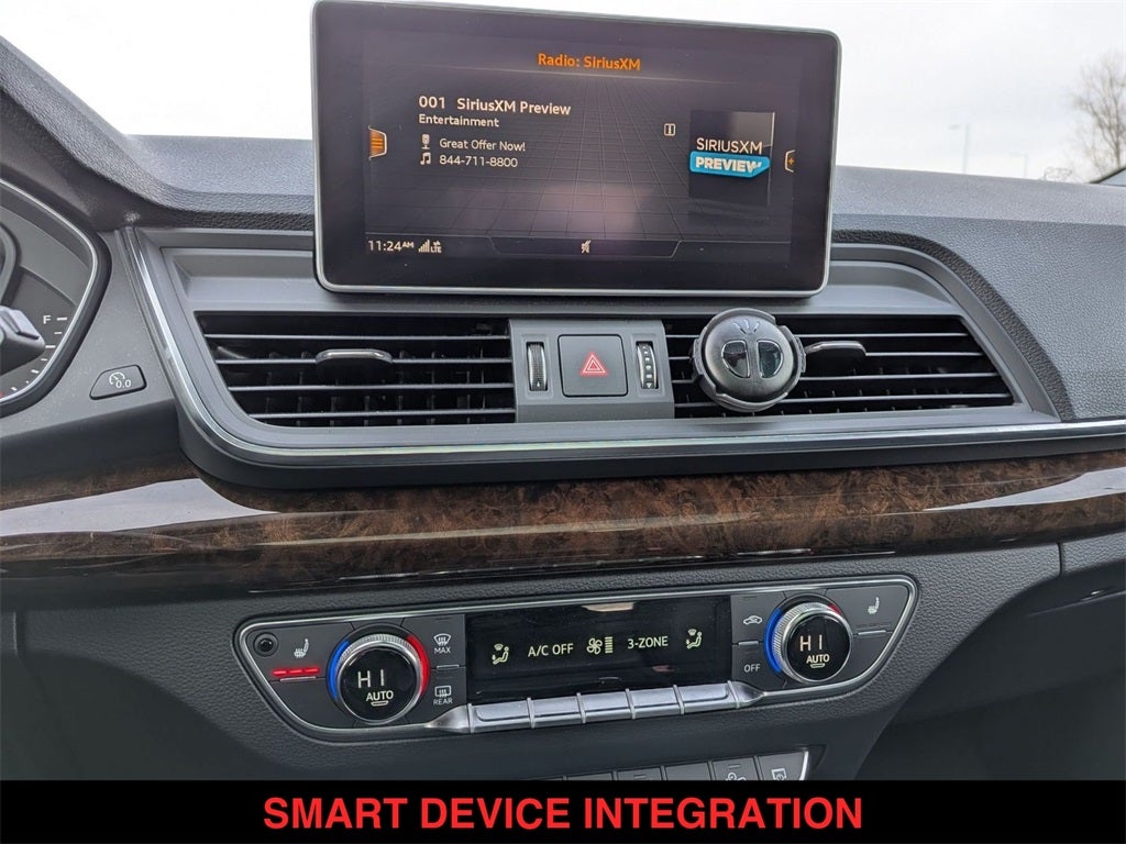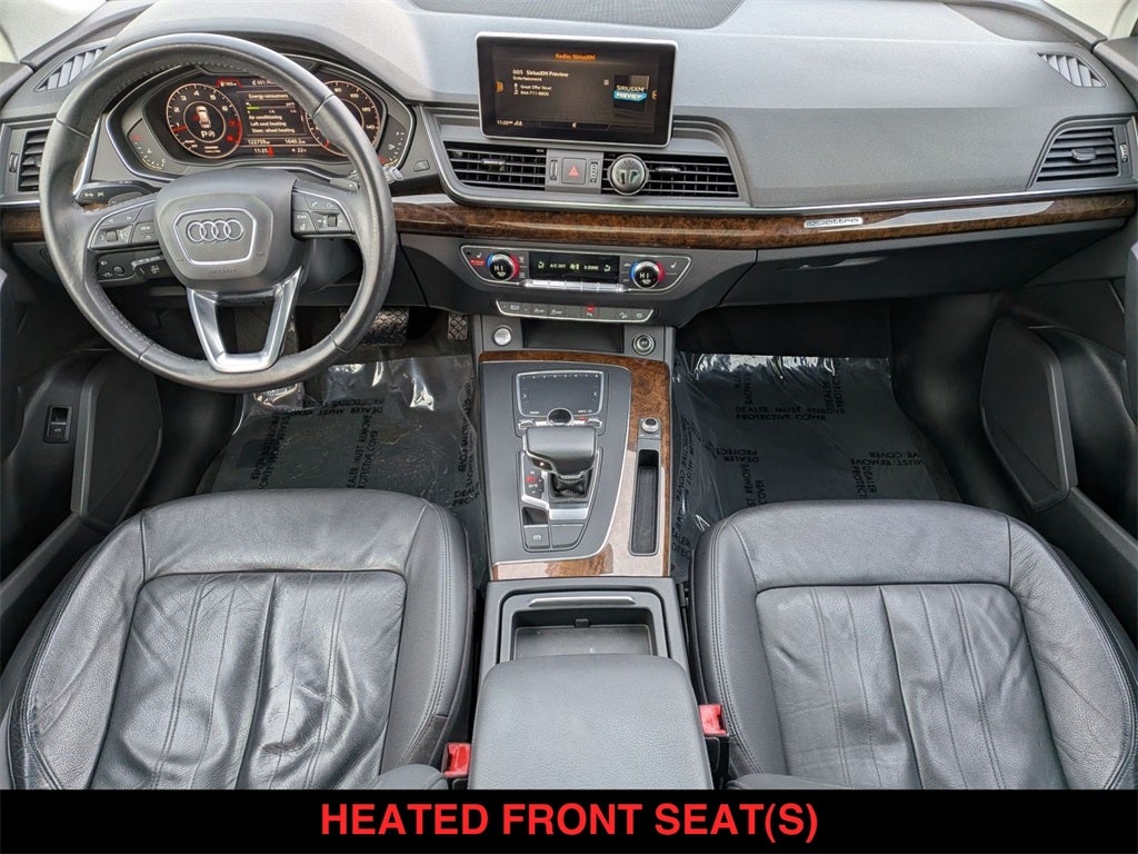 Tow Package, Q5 2.0T Premium Plus quattro, 4D Sport Utility, 2.0L TFSI, 7-Speed Automatic S tronic, quattro, Mythos Black Metallic, Rock Gray w/Leather Seating Surfaces, 10 Speakers, 3-Step Heated Front Seats, 8-Way Power Front Bucket Seats, Audi Advanced Key, Audi Connect CARE, Audi Connect PRIME & PLUS, Audi Side Assist w/Pre Sense Rear, Audi smartphone interface (Apple CarPlay/Android Auto), Audi Virtual Cockpit, Auto-dimming Rear-View mirror, Automatic temperature control, Brake assist, Delay-off headlights, Driver Seat Memory, Electronic Stability Control, Exterior Parking Camera Rear, Four wheel independent suspension, Front fog lights, Front reading lights, Full LED Headlights, Garage door transmitter: HomeLink, Genuine wood console insert, Genuine wood dashboard insert, Genuine wood door panel insert, Heated Auto-Dimming & Power-Adjustable Mirrors, High Gloss Window Surrounds, High intensity discharge headlights: Xenon plus, Illuminated entry, Leather Shift Knob, Leather steering wheel, Low tire pressure warning, Navigation & Telematics Package, Navigation System, Outside temperature display, Panoramic Sunroof w/Tilt/Slide & Power Sunshade, Parking System Plus (Front/Rear Acoustic Sensors), Power Liftgate, Premium Plus Package, Radio: Audi Sound System w/7 TFT Color Display, Radio: MMI Navigation Plus System, Rear air conditioning, Rear Cross Traffic Assist, Remote keyless entry, Security system, SiriusXM All Access Service, Spoiler, Stainless Steel Door Sills, Steering wheel mounted audio controls, Telescoping steering wheel, Turn signal indicator mirrors, Vehicle Exit Assist, Wheels: 8 x 18 5-Double-Spoke Dynamic Design.