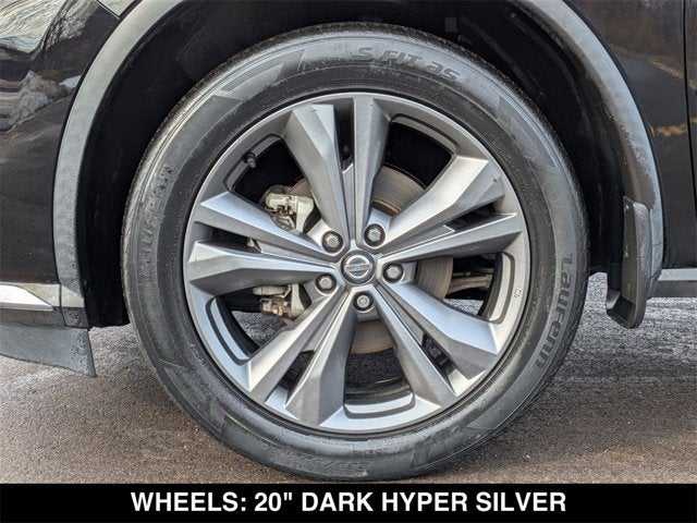 Murano Platinum, 4D Sport Utility, 3.5L V6 DOHC 24V, CVT with Xtronic, FWD, Super Black Metallic, Graphite Leather, 11 Speakers, AM/FM/CD/MP3/WMA Audio System, Auto High-beam Headlights, Auto tilt-away steering wheel, Auto-dimming Rear-View mirror, Automatic temperature control, Blind Spot Warning, Brake assist, Cargo Area Protector, Cargo Net, Cargo Package, Climate-Controlled Front Bucket Seats, Electronic Stability Control, Emergency communication system: NissanConnect Services (first 6 months included), Exterior Parking Camera Rear, First Aid Kit, Front Bucket Seats, Front fog lights, Fully automatic headlights, Garage door transmitter: HomeLink, Heated door mirrors, Heated front seats, Heated steering wheel, Illuminated entry, Illuminated Kick Plates, Illuminated Kick Plates (PIO), Low tire pressure warning, Navigation system: NissanConnect Navigation, NissanConnect featuring Apple CarPlay and Android Auto, NissanConnect Services Powered By SiriusXM, Outside temperature display, Power Liftgate, Power moonroof, Radio data system, Remote keyless entry, Retractable Cargo Cover, Security system, Speed-sensing steering, Speed-Sensitive Wipers, Splash Guards, Spoiler, Steering wheel memory, Steering wheel mounted audio controls, Telescoping steering wheel, Turn signal indicator mirrors, Variably intermittent wipers, Ventilated front seats, Wheels: 20" Dark Hyper Silver.