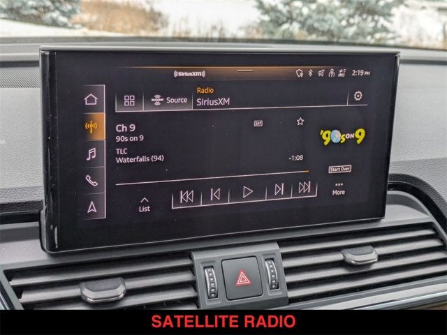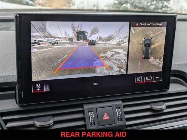 Q5 45 S line Premium quattro, 4D Sport Utility, 2.0L Turbocharged, 7-Speed Automatic S tronic, quattro, Florett Silver Metallic, Black w/Leather Seating Surfaces, 10 Speakers, Adaptive Cruise Control w/Traffic Jam Assist, Audi Active Lane Assist, Audi Advanced Key, Audi Phone Box, Audi Virtual Cockpit Plus, Auto High-beam Headlights, Auto-Dimming Power Folding Exterior Mirrors, Auto-dimming Rear-View mirror, Automatic temperature control, Brake assist, Convenience Package, Driver Seat Memory, Electronic Stability Control, Emergency communication system: Audi connect CARE, Exterior Parking Camera Rear, Front Bucket Seats, Front fog lights, Garage door transmitter: HomeLink, Genuine wood console insert, Genuine wood dashboard insert, Genuine wood door panel insert, Hands-On Detection Steering Wheel, Heated door mirrors, Heated front seats, Heated Steering Wheel, Illuminated entry, Leatherette Covered Center Console & Door Armrests, Low tire pressure warning, Outside temperature display, Panoramic Sunroof, Power Adjustable Steering Column, Power Liftgate, Premium Plus Package, Radio: Audi Sound System, Rain sensing wipers, Rear air conditioning, Rear fog lights, Rear window wiper, Remote keyless entry, Roof rack, SiriusXM All Access Service, Speed-sensing steering, Split folding rear seat, Spoiler, Steering wheel mounted audio controls, Telescoping steering wheel, Top View Camera System, Turn signal indicator mirrors, Wheels: 19" 5-Double-Arm Design Bi-Color Finish.