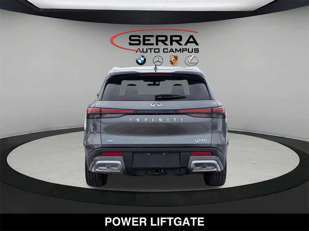 Welcome to the Serra Auto Campus, whether you are looking for a new or pre-owned BMW, Mercedes-Benz or Porsche car, or SUV you will find it here. We have helped many customers from Alma, Ann Arbor, Charlotte, East Lansing, Eaton Rapids, Flint, Grand Blanc, Fenton, Holt, Howell, Jackson, Lansing, Mason, Okemos, Owosso, Mt. Pleasant, Saginaw, Midland, Jackson and Kalamazoo find the BMW, Mercedes-Benz or Porsche of their dreams! Graphite Shadow 2022 INFINITI QX60 4D Sport Utility Sensory AWD 9-Speed Automatic 3.5L V6
