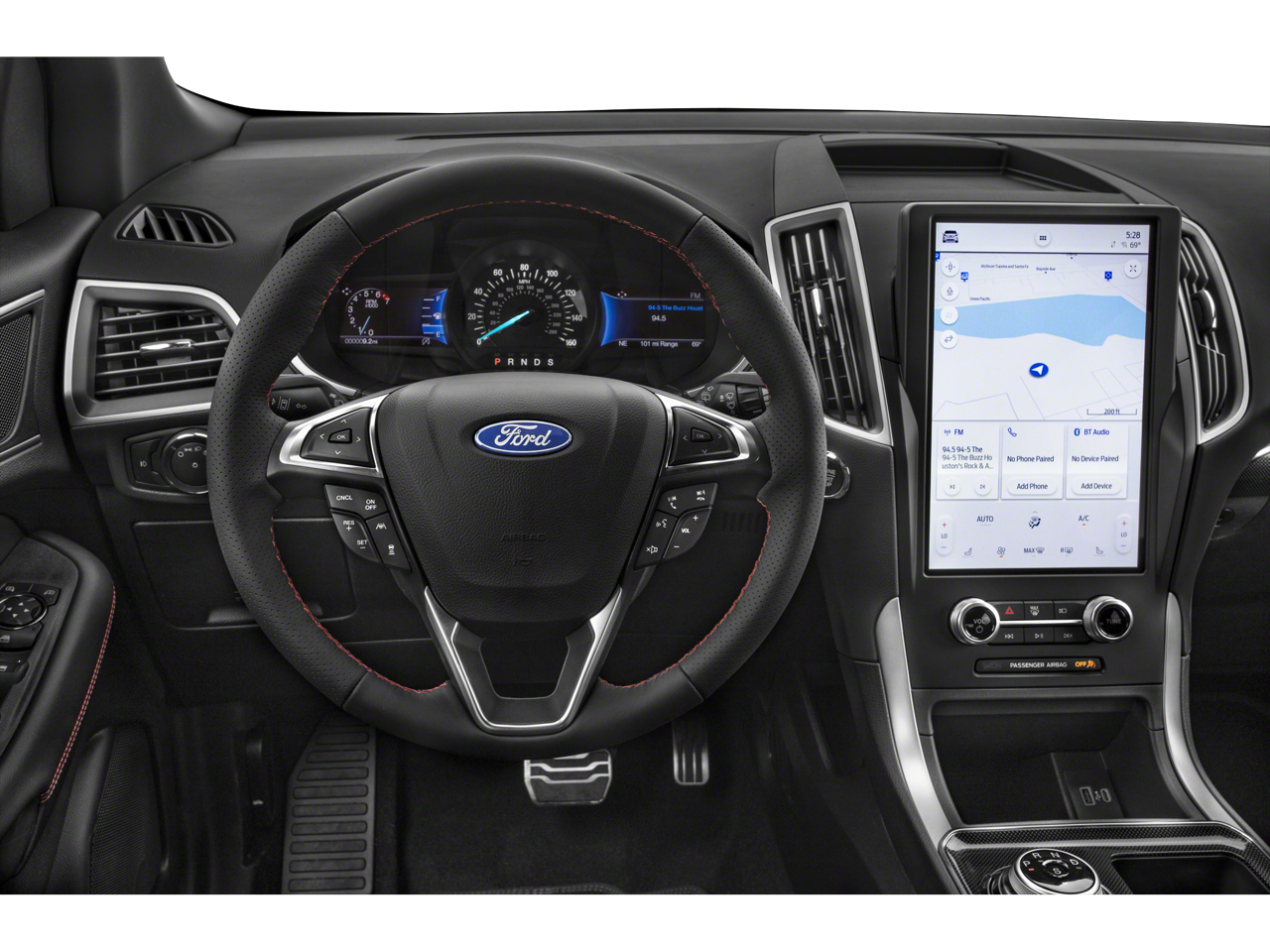 Edge ST Line, 4D Sport Utility, EcoBoost 2.0L I4 GTDi DOHC Turbocharged VCT, 8-Speed Automatic, AWD, Agate Black Metallic, Ebony w/ActiveX Trimmed w/FreeForm Sport Bucket Seats, 6 Speakers, ActiveX Seating Material Heated Bucket Seats, Auto High-beam Headlights, Auto-dimming Rear-View mirror, Automatic temperature control, Brake assist, Electronic Stability Control, Emergency communication system: SYNC 4 911 Assist, Equipment Group 250A, FordPass Connect, Four wheel independent suspension, Front Bucket Seats, Front fog lights, Fully automatic headlights, Garage door transmitter, Heated door mirrors, Heated front seats, Heated Steering Wheel, Illuminated entry, Leather steering wheel, Low tire pressure warning, Outside temperature display, Power Liftgate, Power windows, Radio: AM/FM Stereo/MP3 Capable, Rear Parking Sensors, Remote keyless entry, Security system, SiriusXM w/360L, Steering wheel mounted audio controls, SYNC 4A w/Enhanced Voice Recognition, Telescoping steering wheel, Wheels: 20" Premium Gloss Black-Painted Aluminum.