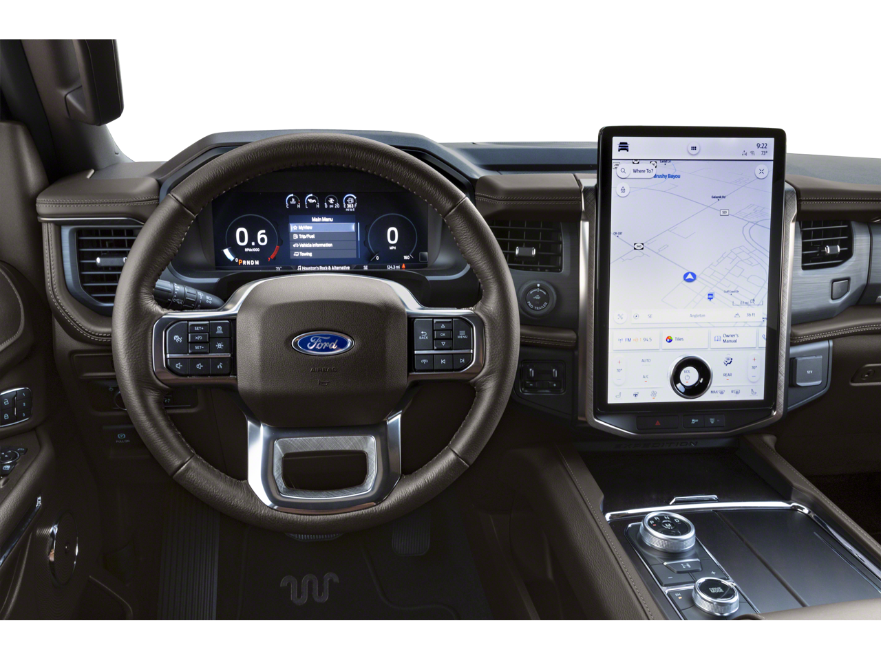 Expedition Max King Ranch, 4D Sport Utility, EcoBoost 3.5L V6 GTDi DOHC 24V Twin Turbocharged, 10-Speed Automatic, 4WD, Star White Metallic Tri-Coat, Java Leather, 22 Speakers, 26mm Engine Radiator, 3.73 Axle Ratio, 360-Degree Camera w/Trailer Reverse Guidance, 3rd row seats: split-bench, Adjustable pedals, Auto High-beam Headlights, Auto Start-Stop Removal (DISC), Auto-dimming door mirrors, Auto-dimming Rear-View mirror, Automatic temperature control, Brake assist, Continuous Controlled Damping (CCD), Electronic Stability Control, Emergency communication system: SYNC 4 911 Assist, Equipment Group 400A Standard Package, Exterior Parking Camera Rear, Front fog lights, Fully automatic headlights, Garage door transmitter, Genuine wood console insert, Genuine wood dashboard insert, Genuine wood door panel insert, Hands-Free Foot-Activated Liftgate Removal (DISC), Heated front seats, Heated rear seats, Heated steering wheel, Heated/Vent Prem Del Rio Lthr Fr Captain's Chairs, Heavy-Duty Trailer Tow Package, Illuminated entry, Integrated Trailer Brake Controller, Leather steering wheel, Low tire pressure warning, Memory seat, Navigation system: Connected Navigation, Outside temperature display, Pedal memory, Power Liftgate, Power moonroof, Pro Trailer Backup Assist, Radio: B&O Unleashed Sound System by Bang & Olufsen, Rear air conditioning, Rear window wiper, Remote keyless entry, Second Row Power Windows Removal, Security system, SiriusXM w/360L, Speed-sensing steering, Speed-Sensitive Wipers, Spoiler, Steering wheel memory, Steering wheel mounted audio controls, SYNC 4 w/Enhanced Voice Recognition, Tachometer, Turn signal indicator mirrors, Ventilated front seats, Voltmeter, Wheels: 22 6-Spoke Polished Aluminum.
