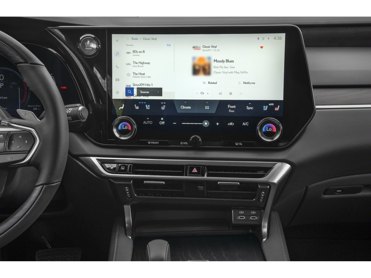- Radio: Lexus Interface w/14" HD Touchscreen Display -inc: 12 speakers, navigation system, wireless Apple CarPlay integration, wireless Android Auto compatibility, Safety Connect w/up to 10-year trial, Service Connect w/up to 10-year trial, Remote Connect w/3-year trial, Wi-Fi Connect w/up to 30-day/3gb trial and Drive Connect w/cloud navigation, Intelligent Assistant and Destination Assist w/3-year trial